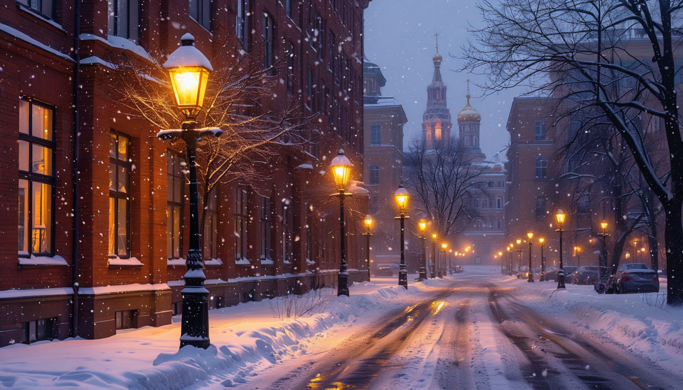 Снег поглощает шум. Гул дорог становится мягче. Шаги слышны отчётливее. Фонари светят теплее. В такие вечера город кажется особенно уютным.